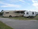 I really like doing what we do for three months, renting the house, coming here. It's so easy to lose perspective when you live behind manned gates in a golf resort. One tends to forget about the rest of the world out there, the working poor, the blue collar guys who have to leave their towns, their wives and kids to make a buck to just survive and take care of them. I like being reminded that there are retirees who seek adventure in the big world right outside our gates.Rather than trying touse a stick to hita little white ball into a cup, these are the folks whose retirement mission is to visit every national park in our system. What a goal. I want to always be aware of those less fortunate than I. I want to remember that jobs are hard to come by, especially in these frightening economic times. I want to see children who are less fortunate than my grandchildren still being nurtured and cared for and living in a poor, but safe environment because their parent/s was smart enough to choose an RV over a ghetto apartment and because most of the Snowbirds here couldn't afford to rent my house, but they can afford to take the time to be nice to a trailer park child. I embrace the dichotomy of the RV lifestyle wholly and with much respect and appreciation for it. I hope I am becoming a better person for the experience...