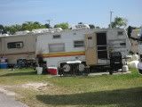 For three months (January - March) we are living about seven miles from our house. We're in an RV park that has one hundred six sites. It is a melange of RVs. Most of the place is now occupied by Snowbirds, folks from northern climes who flock to south Florida for the winter months. Conceptually, much like our renters. There are others here aside from Snowbirds. There are the working poor, folks who permanently live in RVs designed to be vacation homes, hence the name recreational vehicle. No matter how you slice it and dice it an RV is substandard housing and certainly not capable of withstanding extreme weather conditions such as the hurricanes we experience here. Also, in this park, the permanent folks tend to live in older, shabby motorhomes, fifth wheelers or trailers. There are some children as permanent residents and some older people. I think maybe people with hard luck stories. I don't really know. What I do know is that as year round residents at the park, their monthly rent is probably no more than six hundred dollars with electric, water, sewer, nice shower and bathroom facilities (although almost everyone uses their own on board facilities), school bus pick up at the door and a community room with a smalllibrary and a big screen TV with cable included in the price. It sure beats the average apartment rent of just about a thousand dollars a month, utilities extra. The other plus is that the snowbirds are grandparents and are very nice and kind to the children.